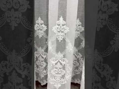 Linen sheer curtain with beautiful embroidery, milk color