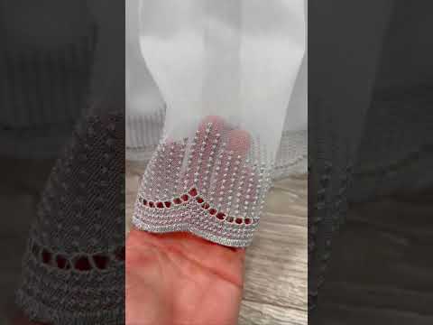 Sheer curtain with chenille embroidery on the bottom , gray color