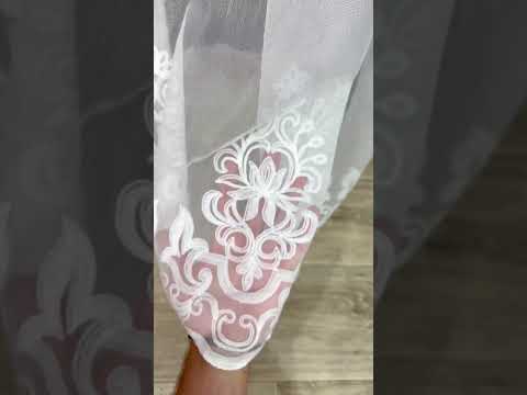 Sheer curtain with chenille embroidery on the bottom , milk color