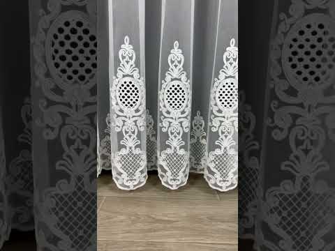 Sheer curtain with chenille embroidery on the bottom , milk color