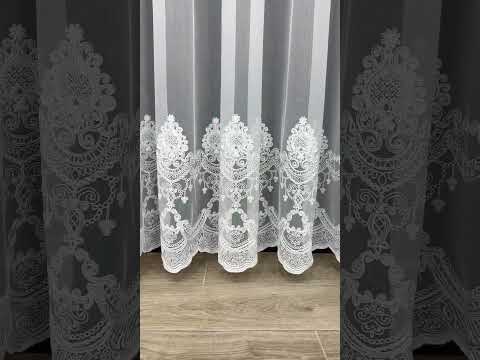 Sheer curtain with chenille embroidery on the bottom , milk color