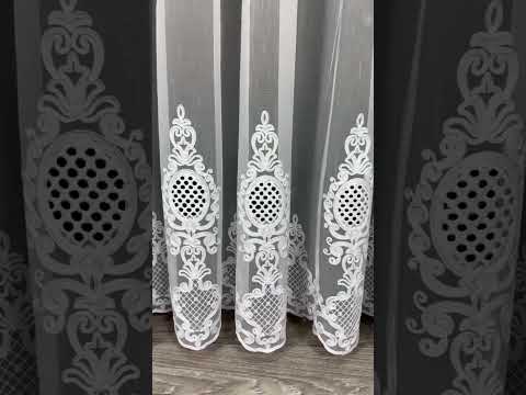 Sheer curtain with chenille embroidery on the bottom , white color