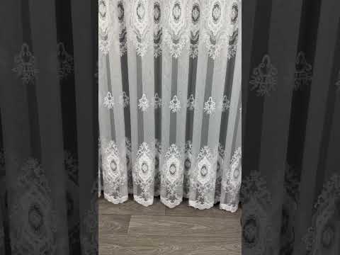Sheer curtain with velvet inserts, stones and elegant embroidery, white color
