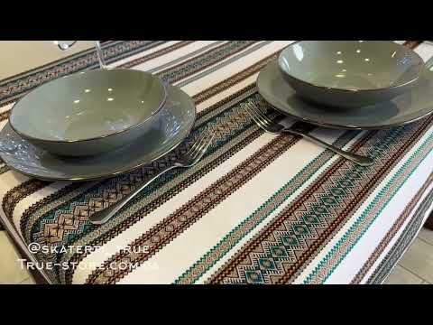 A tablecloth is an indispensable element of kitchen or dining room decoration. Ukrainian-style tablecloth is a family amulet. Traditional Ukrainian ornament on the tablecloth will make the interior thematic. The fabric has the effect of three-dimensional embroidery and the texture of natural linen.
