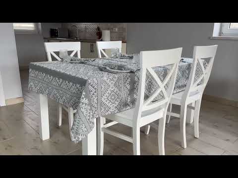 A tablecloth is an indispensable element of kitchen or dining room decoration. Ukrainian-style tablecloth is a family amulet. Traditional Ukrainian ornament on the tablecloth will make the interior thematic. The fabric has the effect of three-dimensional embroidery and the texture of natural linen.