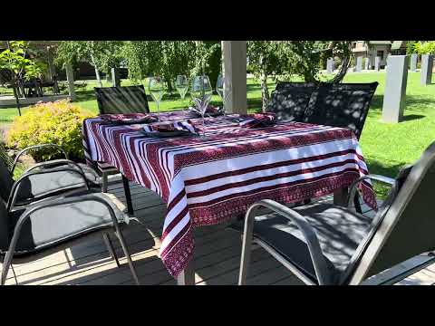 A tablecloth is an indispensable element of kitchen or dining room decoration. Ukrainian-style tablecloth is a family amulet. Traditional Ukrainian ornament on the tablecloth will make the interior thematic. The fabric has the effect of three-dimensional embroidery and the texture of natural linen.