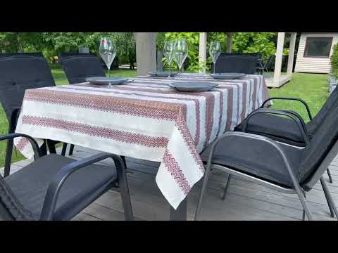 A tablecloth is an indispensable element of kitchen or dining room decoration. Ukrainian-style tablecloth is a family amulet. Traditional Ukrainian ornament on the tablecloth will make the interior thematic. The fabric has the effect of three-dimensional embroidery and the texture of natural linen.